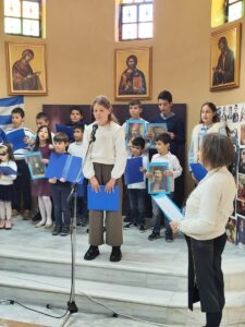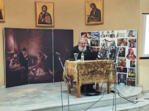 Εν συνεχεία, τον λόγο πήρε ο προϊστάμενος του Ιερού Ναού Αγίου Γεωργίου Καρδίτσας π. Δημήτριος Θεοδωρόπουλος, με θέμα της ομιλίας του «Διπλή Γιορτή», κάνοντας εποικοδομητικό και ενδιαφέρον διάλογο με τα παιδιά του κατηχητικού.