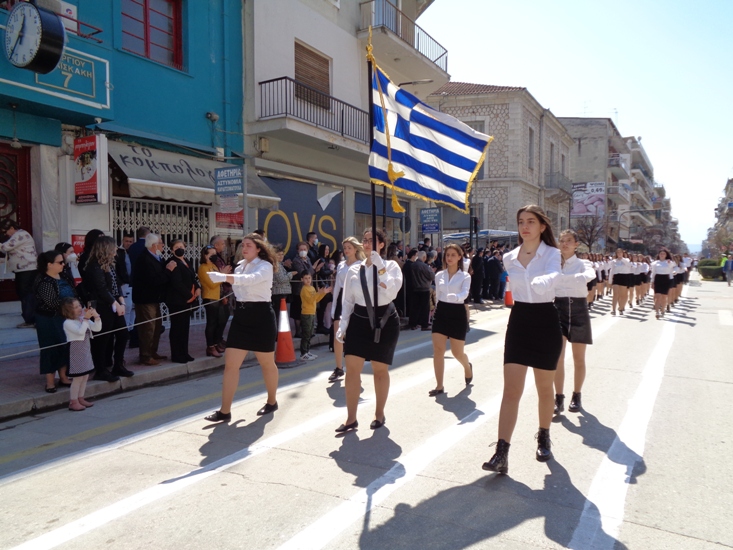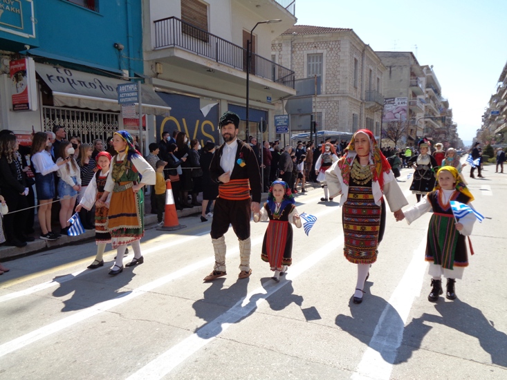Οι εορταστικές εκδηλώσεις κορυφώθηκαν με την παρέλαση στην οδό Καραϊσκάκη που έγινε έπειτα από δυο χρόνια απουσίας λόγω της πανδημίας.