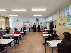 Σε όλους τους μαθητές της Α΄ τάξεως των ανωτέρω σχολικών μονάδων διένειμε την Καινή Διαθήκη, μιλώντας μαζί τους για την αποκάλυψη του Θεού.