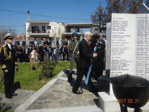 Στην συνέχεια, πεζοπορώντας, ο Πρόεδρος της Δημοκρατίας μετέβη στο Ηρώο της Κεντρικής Πλατείας Ματαράγκας όπου εψάλη επιμνημόσυνη δέηση και κατέθεσε στεφάνι στο Ηρώο Πεσόντων.