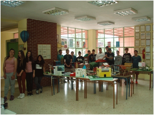 Παράλληλα στο πλαίσιο των μαθημάτων των Εικαστικών και της Τεχνολογίας πραγματοποιήθηκε έκθεση ζωγραφικής και κατασκευών από τους μαθητές του σχολείου μας. Οι μαθητές/τριες υπό την επίβλεψη των υπεύθυνων καθηγητριών τους κ. Αναστασίας Μαχαίρα(Καλλιτεχνικών) και κ. Χριστίνας Κονναρή(Τεχνολογία) δημιούργησαν έργα ζωγραφικής και κατασκευές με διάφορα θέματα, όπως μεταφορές και επικοινωνία, γεωργική τεχνολογία, ενέργεια και ισχύς, εργαλεία και μηχανές
