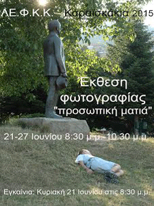Η Λέσχη Φωτογραφίας & Κινηματογράφου Καρδίτσας (ΛΕ.Φ.Κ.Κ.), στα πλαίσια των εκδηλώσεων του 48ου Φεστιβάλ Πολιτισμού “Καραϊσκάκια“ και σε συνεργασία με την Ένωση Πολιτιστικών Συλλόγων Ν. Καρδίτσας, διοργανώνει έκθεση φωτογραφίας, με θέμα ’’προσωπική ματιά’’