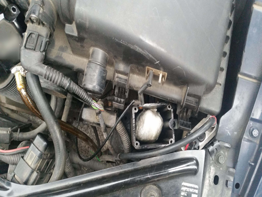 σε ειδικά διαμορφωμένη κρύπτη στο χώρο του κινητήρα, μια νάιλον συσκευασία με κοκαΐνη σε μορφή βράχου, βάρους (114) γραμμαρίων, καθώς και