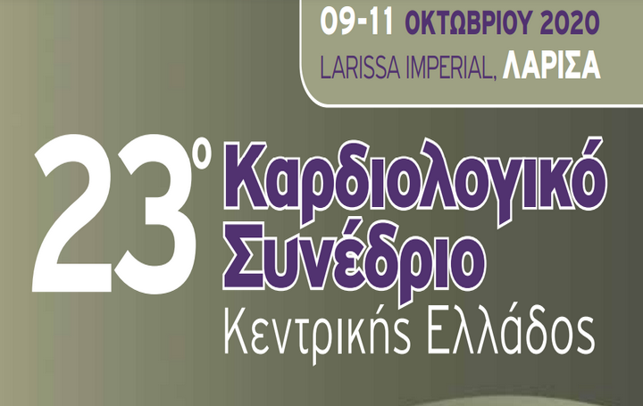 Το 23ο Καρδιολογικό Συνέδριο Κεντρικής Ελλάδος, θα διεξαχθεί κατά το τριήμερο από Παρασκευή μέχρι και Κυριακή, 9 έως 11 Οκτωβρίου 2020, στο ξενοδοχείο ‘’Divani Palace’’στη Λάρισα.