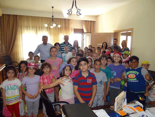 Ο κ. Σκάρλος τους υποδέχτηκε στο γραφείο του εγκάρδια και με απλά λόγια εξήγησε στους μικρούς μαθητές την λειτουργία του Δήμου, ιδιαίτερα στον τομέα της καθημερινότητας.