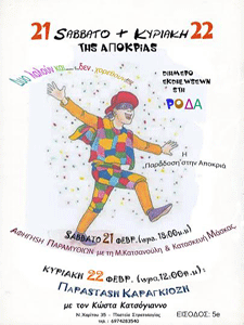 Κυριακή 22 Φεβρουαρίου 2015 Παράσταση Καραγκιόζη με τον Κώστα Κατσόγιαννο  Ώρα 12.00