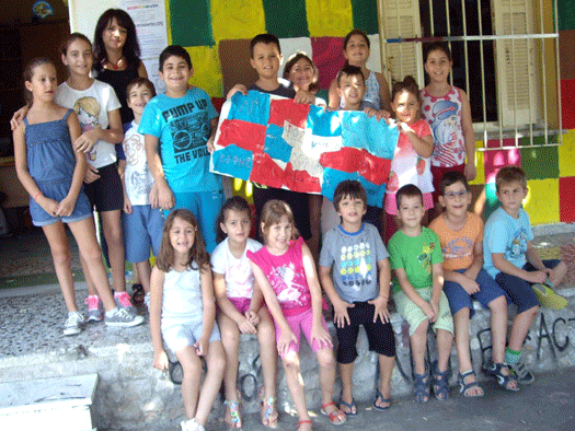 Η παιδική βιβλιοθήκη συνοικίας «Αγίου Νικολάου» για δύο περίπου ώρες, μετατράπηκε σ’ ένα ραφείο… λέξεων. Τα παιδιά, σε μικρά κομμάτια πανί, από παλιά δικά τους άχρηστα υφάσματα, αποτύπωσαν αγαπημένες τους καλοκαιρινές λέξεις και με βελόνες και κλωστές, προσπάθησαν να τις δώσουν πολύχρωμο φόντο, ώστε να τις ενώσουν και να φτιάξουν την καλοκαιρινή σημαία της βιβλιοθήκης!!!