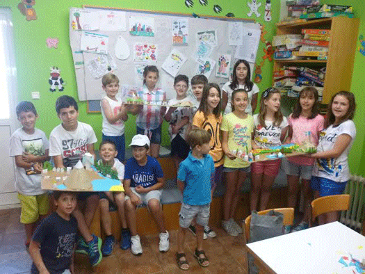 Τέλος τα παιδιά, πάνω σε σκληρό χαρτόνι από «πεταμένα» κουτιά, έφτιαξαν χωρισμένα σε ομάδες, τη χώρα των βιβλίων. Σ’ ένα τριασδιάστατο τοπίο, γεμάτο χρώματα, φυσικά κι αφύσικα, δημιούργησαν εντυπωσιακά βουνά, ποτάμια, δάση και χωριά, που άφησαν κατάπληκτους όλους όσους βρέθηκαν στη βιβλιοθήκη.