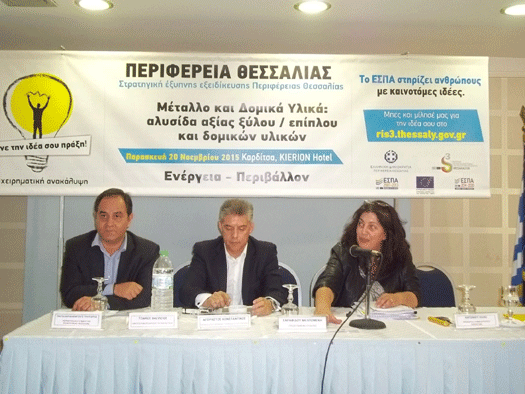 Το θέμα της ημερίδας, η οποία έγινε στα πλαίσια  της Περιφερειακής Στρατηγικής Έξυπνης Εξειδίκευσης της Θεσσαλίας (RIS3), είχε ως αντικείμενο  το «Μέταλλο και Δομικά Υλικά :  αλυσίδα αξίας ξύλου / επίπλου και δομικών υλικών και  Ενέργεια – Περιβάλλον».