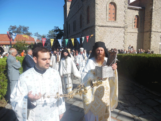 Μετά το πέρας, ακολούθησε Ιερά λιτανεία της τιμίας κάρας και αρτοκλασία στον προαύλιο χώρο του ως άνω Ιερού Ναού.