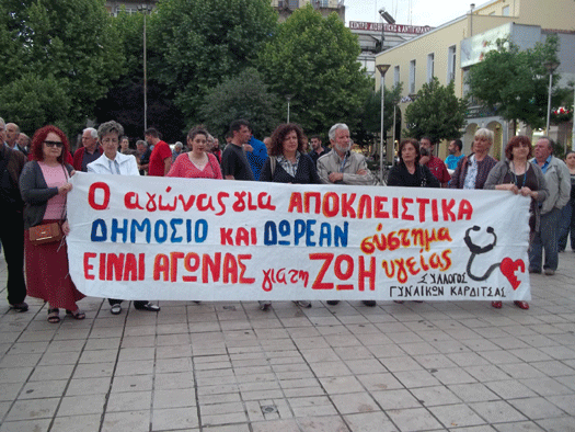 Συλλαλητήριο για την Υγεία διοργάνωσε, το απόγευμα της Τετάρτης, στην κεντρική πλατεία της Καρδίτσας, ο Σύλλογος Γυναικών Καρδίτσας (μέλος της ΟΓΕ), με τη συμμετοχή σωματείων και συλλόγων του νομού.