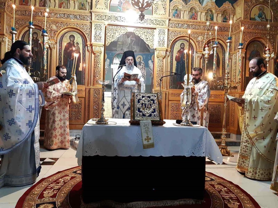 Πρώτα, τελέσθηκε η ακολουθία του Εσπερινού, εν συνεχεία η ακολουθία του Όρθρου και η Θεία Λειτουργία.