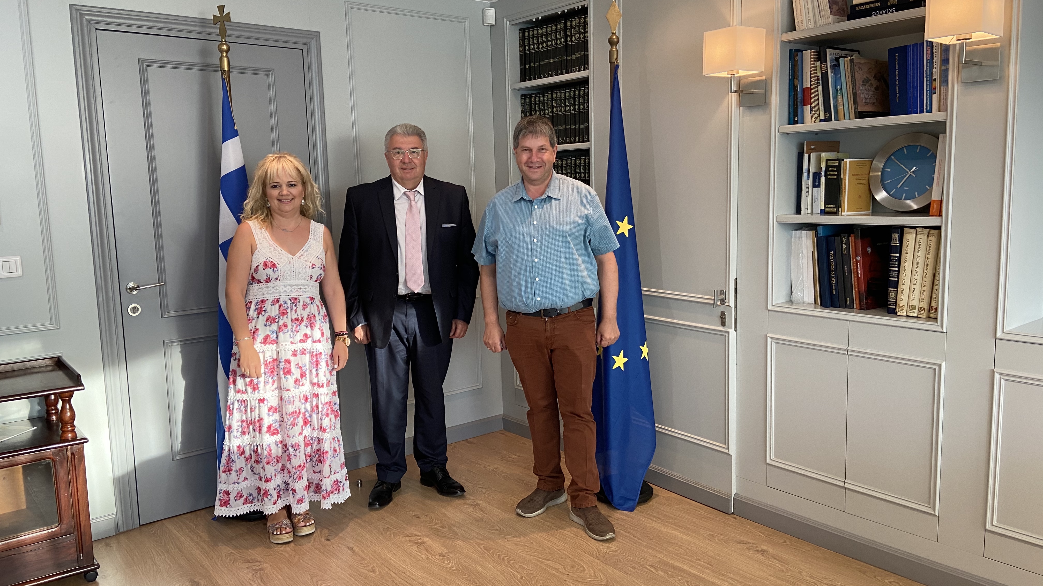 Το Γενικό Γραμματέα Δημόσιας Διπλωματίας και Απόδημου Ελληνισμού κ. Ιωάννη Χρυσουλάκη επισκέφτηκαν ο Πρόεδρος της Παγκόσμιας Συνομοσπονδίας Θεσσαλών «Ασκληπιός» κ. Διαμαντής Γκίκας και η Γραμματέας κ. Φωτεινή Μίχου. Η συνάντηση πραγματοποιήθηκε στο γραφείο του Γενικού Γραμματέα σε ζεστό και εγκάρδιο κλίμα.