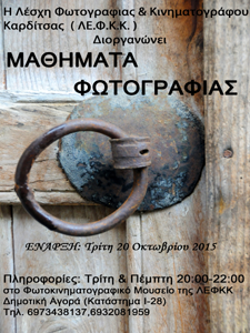 Η Λέσχη Φωτογραφίας & Κινηματογράφου Καρδίτσας (ΛΕΦΚΚ) ξεκινά νέο κύκλο μαθημάτων φωτογραφίας τα οποία απευθύνονται σε όλους τους εν δυνάμει φίλους της φωτογραφικής τέχνης.