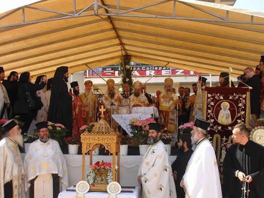 Την Κυριακή των Μυροφόρων 26 Απριλίου πραγματοποιήθηκε στον Μητροπολιτικό Ναό της Καρδίτσας ο Όρθρος και Πανηγυρική Θεία Λειτουργία προεξάρχοντος του Σεβασμιωτάτου Μητροπολίτου Καστορίας κ. Σεραφείμ και συλλειτουργούντων των Σεβασμιωτάτων Μητροπολιτών: Πειραιώς κ. Σεραφείμ, Κυθήρων και Αντικυθήρων κ. Σεραφείμ του Σεβασμιωτάτου Ποιμενάρχου μας κ. Τιμοθέου και του Θεοφιλεστάτου Επισκόπου Ρεντίνης κ. Σεραφείμ και σύσσωμου του Ιερού κλήρου. Στις 11.00 π.μ έγινε η λιτάνευση της Τιμίας Κάρας σε μεγάλη θρησκευτική πομπή που ξεκίνησε από τον Μητροπολιτικό Ναό και κατέληξε στην κεντρική πλατεία της Καρδίτσας όπου τελέσθηκε η αρτοκλασία. Στην πομπή συμμετείχαν οι αρχές του τόπου, άγημα του στρατού, η μπάντα του Δήμου, πολιτιστικοί σύλλογοι, μαθητές των
