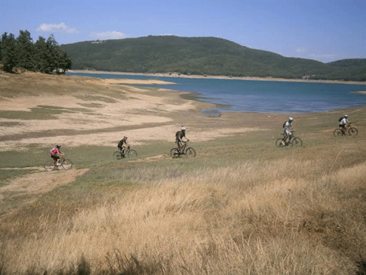 Μιας και η στάθμη της λίμνης είχε κατέβει πολύ χαμηλά, αποτέλεσμα και της πολύ κακής διαχείρισης των αποθεμάτων από τους ‘’υπεύθυνους’’, αποφασίσαμε να κινηθούμε στις όχθες της λίμνης, αφού είναι μια σπάνια ευκαιρία και μια μοναδική εμπειρία για κάποιους που το κάνουν πρώτη φορά. Έτσι κινούμαστε παραλίμνια ανάμεσα στα φιόρδ που σχηματίζουν τα νερά, απολαμβάνοντας το σπάνιο τοπίο, φτάνουμε στην πλαζ της Πεζούλας. Mπαίνουμε στο πυκνό δάσος βελανιδιάς και πότε από στενούς χωματόδρομους, πότε από μονοπάτια, κάνοντας μια διαδρομή όπου πριν από τρεις μήνες είχε γίνει το παγκόσμιο τρίαθλο X TERRA και ξαναβγαίνουμε στις όχθες της λίμνης όπου τις ακλουθούμε και φτάνουμε στην κεντρική άσφαλτο κάτω από το Κρυονέρι. Ανεβαίνουμε στο χωριό και κάνουμε στάση για ξεκούραση στο καφενείο της πλατείας για καφέ και μπύρες!!!