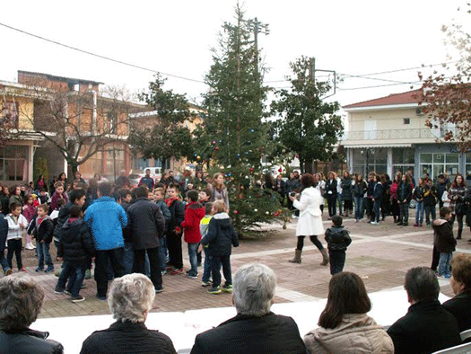 Η χορωδία του δημοτικού σχολείου δίπλα στο φωταγωγημένο έλατο τραγούδησε χριστουγεννιάτικα τραγούδια και ο Αι Βασίλης μοίρασε δωράκια στα παιδιά.