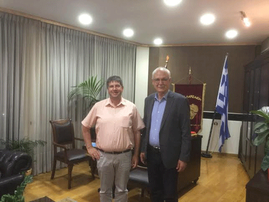 Τέλος ο Πρόεδρος της Ομοσπονδίας ευχαρίστησε τον κ. Δήμαρχο για τη φιλοξενία του 7ου Παγκοσμίου Συνεδρίου των Θεσσαλών που φέτος θα διοργανωθεί σε συνεργασία με το Δήμο Λαρίσης στις 11 και 12 Ιουλίου 2015, όπου οι δύο άντρες ανανέωσαν το ραντεβού τους.