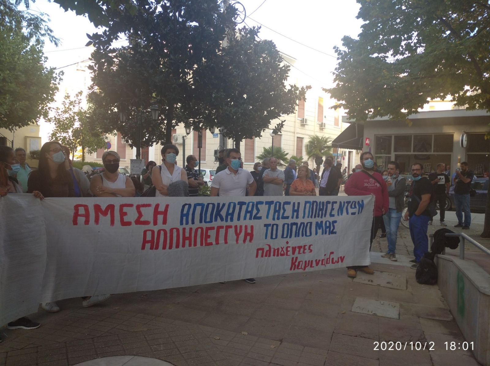 Η συνάντηση που είχαν προγραμματίσει οι συντονιστικές επιτροπές πληγέντων των Καμινάδων και του Αλιάκ Μαχαλα με τη δημοτική αρχή,πήρε άλλη τροπή και μετατράπηκε σε παράσταση διαμαρτυρίας. Αυτό έγινε καθώς την επόμενη μέρα του δημοτικού συμβουλίου ο δήμαρχος έφτιαξε «συντονιστική επιτροπή» με τους βουλευτές του νομού, τον περιφερειάρχη και τον αντιπεριφερειάρχη. Εκεί λοιπόν σχεδιάζουν να μας δώσουν ψίχουλα σαν επιδόματα, στεγαστικά δάνεια και αποζημιώσεις έως μόνο 70%, αντί για αυτά που ψηφίστηκαν στο δημοτικο συμβούλιο, δηλαδή αποζημιώσεις στο 100% χωρίς όρους, εξαιρέσεις και προυποθέσεις.
