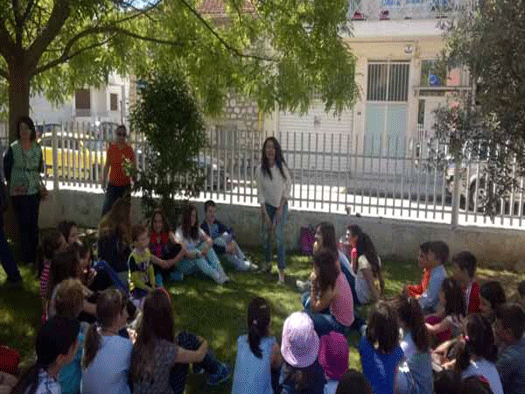 Αρχικά τα παιδιά έπαιξαν με τους στίχους του τραγουδιού μέσα από λογοθεατρικό στα Ελληνικά και στα Αγγλικά -σε μετάφραση της ίδιας –  ενώ στη συνέχεια υπό την καθοδήγηση της παιδαγωγού δραματοποίησαν μουσικοκινητικά το τραγούδι χρησιμοποιώντας μικρά κρουστά, φωνή και κίνηση.