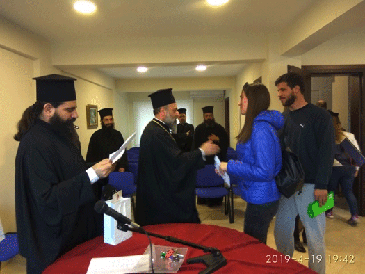 Στην συνάντηση αυτή απηύθυνε πατρικές νουθεσίες και παραινέσεις προς τους Μελλονύμφους. Παράλληλα, επέδωσε τις σχετικές άδειες τελέσεως του Μυστηρίου του Γάμου των.