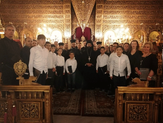 Τη χορωδία διηύθυνε ο Ιερολογιώτατος Αρχιδιάκονος π. Θωμάς Κάιας, καθηγητής του Παραρτήματος στα Φάρσαλα.