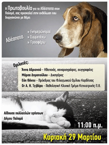 Μια πολύ ενδιαφέρουσα ημερίδα με θέμα “Αδέσποτα: ενημερώνομαι, συμμετέχω, προσφέρω” διοργανώνεται την Κυριακή 29 Μαρτίου και ώρα 11.00 πμ στην αίθουσα πολλαπλών χρήσεων στον Παλαμά.