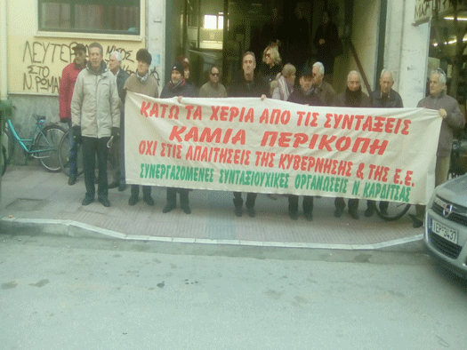 «Απαιτούμε την άμεση απόσυρση των κυβερνητικών προτάσεων, λέμε όχι στη διάλυση της κοινωνικής ασφάλισης» καταλήγουν οι συνταξιούχοι της Καρδίτσας.