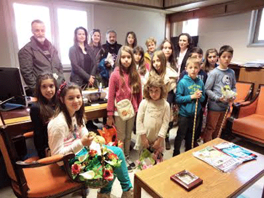 Τα παιδιά πρόσφεραν στον κ. Κηρύκο μια ανθισμένη γλάστρα, θέλοντας έτσι να δώσουν το μήνυμα της αναμονής της άνοιξης και της ψυχικής και ηθικής ανάτασης , που όλοι ευχόμαστε.