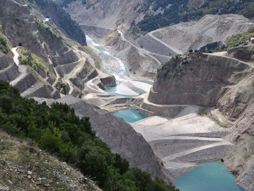 Το «σεληνιακό» τοπίο που δημιουργήθηκε από την ανάγκη των έργων πολύ δύσκολα να αποκατασταθεί παρά μόνο να καλυφθεί από τα νερά της λίμνης.