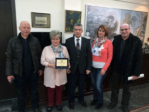 Τιμητική πλακέτα για τη σημαντική και διαρκή προσφορά του στη Θεσσαλία με το έργο του, έδωσε την Πέμπτη στον Περιφερειάρχη Θεσσαλίας κ. Κώστα Αγοραστό, μέλη της διοίκησης του Συλλόγου Ιδιοκτητών Φροντιστηρίων Ξένων Γλωσσών Κεντρικής Ελλάδας οι οποίοι τον επισκέφθηκαν στο γραφείο του.