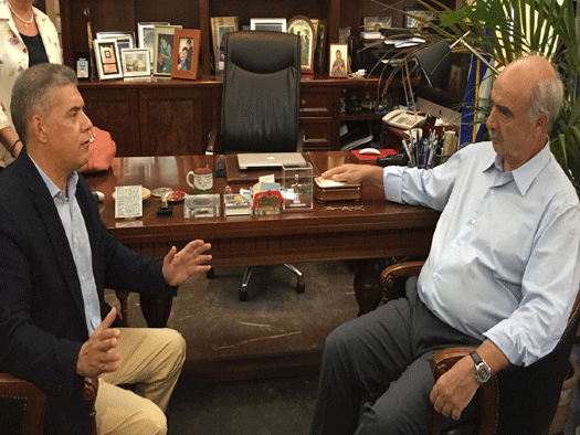Τον Πρόεδρο της Ένωσης Περιφερειών Ελλάδας και Περιφερειάρχη Θεσσαλίας Κώστα Αγοραστό επισκέφθηκε στο γραφείο του το απόγευμα του Σαββάτου ο Πρόεδρος της Νέας Δημοκρατίας κ. Βαγγέλης Μεϊμαράκης επ’ αφορμή της επίσκεψης που πραγματοποιηθεί σε περιοχές της Θεσσαλίας.