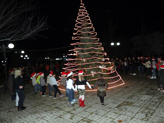 Αρχικά τα παιδιά, φορώντας σκουφάκια του Αη Βασίλη στόλισαν το δέντρο που θα κοσμεί καθ’ όλη τη διάρκεια της εορταστικής περιόδου την πλατεία και ακολούθως, ο πρόεδρος της Τοπικής Κοινότητας κ. Κωνσταντίνος  Μπάλλας έδωσε το σύνθημα να ανάψουν τα εκατοντάδες λαμπάκια. Ταυτόχρονα, τα βεγγαλικά αλλά και τα φωτεινά μπαλόνια που ελευθερώθηκαν στον βραδινό ουρανό, δημιούργησαν ένα φαντασμαγορικό θέαμα.  Στη συνέχεια μέλη της Ομάδας Λαϊκού και Παραδοσιακού Χορού, χόρεψαν γύρω από το Χριστουγεννιάτικο δέντρο σε παραδοσιακούς αλλά και Χριστουγεννιάτικους ρυθμούς δημιουργώντας έτσι μια εορταστική ατμόσφαιρα.