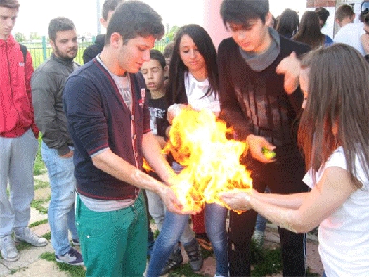 Βάλαμε φωτιά στα χέρια μας … και στα χέρια όσων ήθελαν να δοκιμάσουν, χωρίς να καούμε φυσικά. Με λίγο ασβέστη και νερό … τηγανίσαμε αυγά και τυράκι. Τσαλακώσαμε κουτάκια μπύρας και αναψυκτικών …μόνο με νερό. Σβήσαμε κεράκια… με τη βοήθεια της χημείας. Φτιάξαμε θερμοκήπια και μακέτα αγροκτήματος με ροδιές. Παγιδέψαμε σαλιγκάρια και ανιχνεύσαμε ανθρακικό ασβέστιο σε διάφορους τύπους χώματος.Καλέσαμε τους επισκέπτες να παρατηρήσουν έντομα στο στερεοσκόπιο.Παρουσιάσαμε αρωματικά φυτά που καλλιεργήσαμε φέτος στο θερμοκήπιό μας.