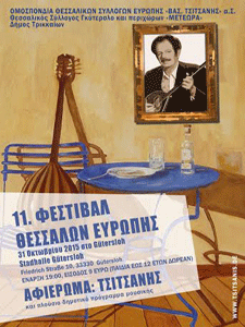 Το 11ο Φεστιβάλ είναι αφιερωμένο στα εκατό χρόνια από την γέννηση του μεγάλου Θεσσαλού καλλιτέχνη Βασίλη Τσιτσάνη μιας και το έτος 2015 έχει χαρακτηριστεί ως έτος ΒΑΣΙΛΗ ΤΣΙΤΣΑΝΗ. Στη διοργάνωση θα συμμετέχει ο Δήμαρχος Τρικκαίων κ. Παπαστεργίου μαζί με την μουσική ορχήστρα του Δήμου Τρικκαίων «Βασίλης Τσιτσάνης».