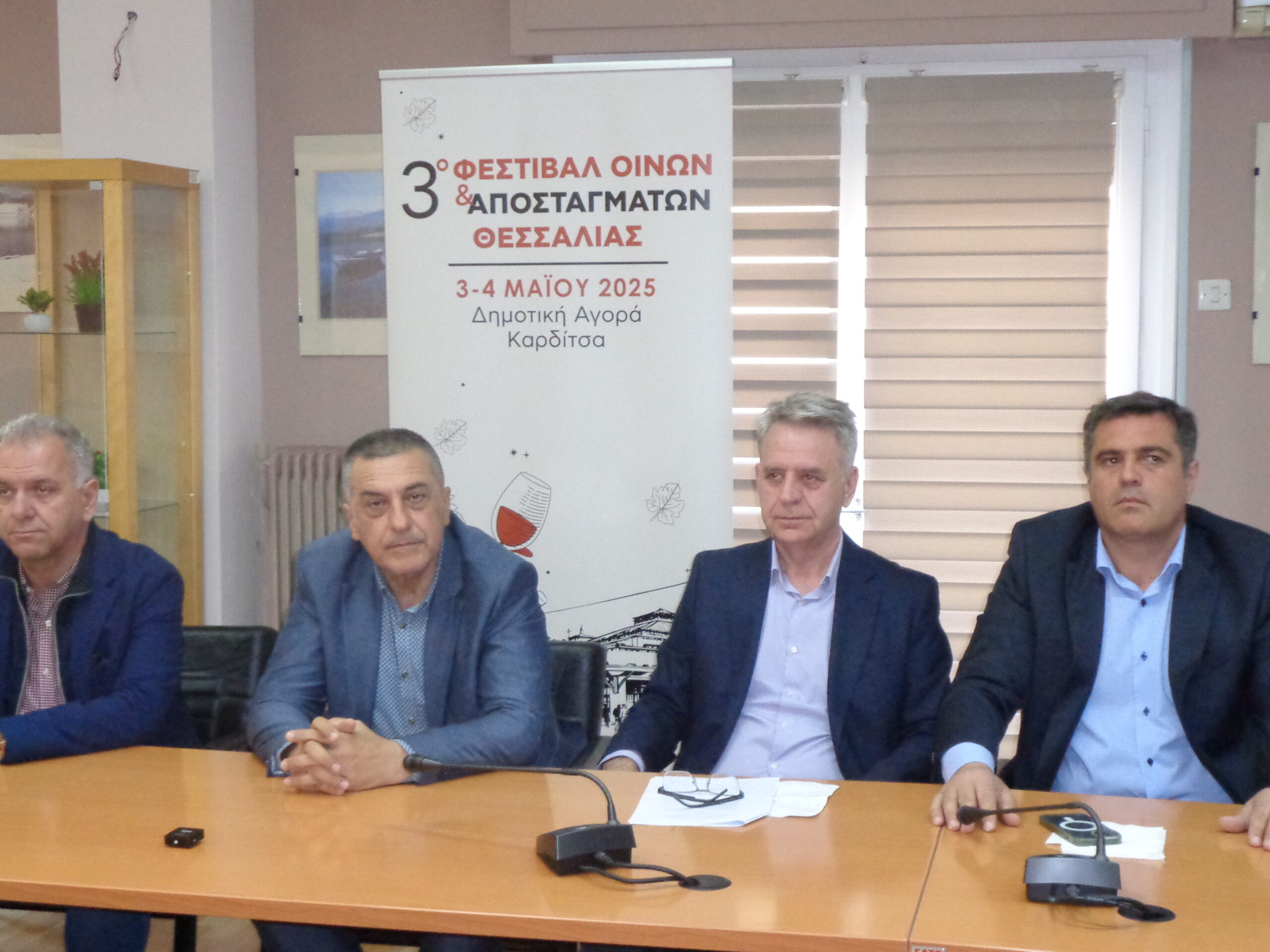 Η Περιφέρεια Θεσσαλίας προγραμματίζει και στηρίζει δράσεις εξωστρέφειας για τα θεσσαλικά κρασιά και αποστάγματα, καθώς και για μια σειρά αγροτικών προϊόντων, με στόχο τη δυναμική παρουσία τους στις διεθνείς αγορές, τόνισε ο Περιφερειάρχης Θεσσαλίας, Δημήτρης Κουρέτας, στο πλαίσιο της συνέντευξης Τύπου που πραγματοποιήθηκε στο Διοικητήριο της Καρδίτσας για το 3ο Φεστιβάλ Οίνων και Αποσταγμάτων της Θεσσαλίας, που θα πραγματοποιηθεί το Σαββατοκύριακο 3-4 Μάιου στην Καρδίτσα.
