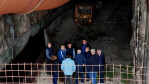 Πρώτος σταθμός της περιοδείας τους το Πευκόφυτο, στην έξοδο της σήραγγας μεταφοράς νερού στη Δρακότρυπα. Ακολούθησε αυτοψία στην είσοδο της σήραγγας μεταφοράς νερού στο Πετρωτό, συνολικού μήκους 17,5 km και τέλος οι κ.κ. Κουρέτας-Μαμάκος επισκέφθηκαν τα ημιτελή έργα του φράγματος Συκιάς.