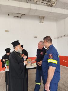 Οι Πυροσβεστικοί Υπάλληλοι της Π.Υ. Καρδίτσας δέχθηκαν με χαρά τον Σεβασμιώτατο, ο οποίος απηύθυνε τις ευχές και ευλογίες του προς όλους τους Πυροσβεστικούς Υπαλλήλους και τις οικογένειες τους, για υγεία και δύναμη, στο δύσκολο έργο τους.