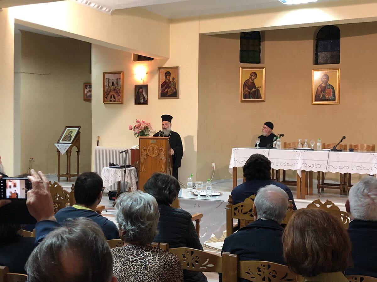 Το απόγευμα της Κυριακής 18 Μαΐου 2025 μετά το πέρας της Ακολουθίας του Εσπερινού, πραγματοποιήθηκε η 7η και τελευταία για φέτος ομιλία – συζήτηση, με τίτλο «ΑΓΙΟΙ ΔΙΠΛΑ ΜΑΣ» με ομιλητή τον π. Χριστόδουλο Μπίθα, Θεολόγο – συγγραφέα.