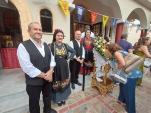 Οι εκδηλώσεις συνεχίστηκαν την Τετάρτη, με την έναρξη της εκδήλωσης στις οκτώ το βράδυ, 27 Αυγούστου, μετά το πέρας του μεθέορτου εσπερινού, στο προαύλιο χώρο του Ιερού Ναού Αγίου Φανουρίου της ομώνυμης συνοικίας, με παρουσίαση, πρώτα, χορών από την περιοχή μας και, μάλιστα, με την απόδοση των τραγουδιών χωρίς τη συνοδεία οργάνων, μονοφωνικά, «με το στόμα», όπως λέγεται, από την κ. Τούλα Κωστάμη καθώς και από διάφορες περιοχές του Ελληνισμού από τα χορευτικά τμήματα του Συλλόγου, ακολουθώντας γλέντι για όλους. Την εκδήλωση τίμησαν με την παρουσία τους και λάμπρυναν την εκδήλωση  οι ιερείς του ναού, ο πανοσιολογιώτατος αρχιμανδρίτης, π. Μητροφάνης Αγαπίδης, και ο αιδεσιμώτατος, π. Αθανάριος Τζώρας, οι βουλευτές της Νέας Δημοκρατίας στο Νομό Καρδίτσας, κ. Γεώργιος Κωτσός, και ο κ. Αριστοτέλης Σπάνιας και η εκπρόσωπος της βουλευτού της Νέας Δημοκρατίας της κ. Ασημίνας Σκόνδρα, κ. Θεοδώρα Τσιγγενοπούλου, καθώς και πλήθος κόσμου, τους οποίους, όλους και όλες, ο Σύλλογος ευχαριστεί. Να αναφερθεί, ότι η εκδήλωση αυτή ήταν σε συνδιοργάνωση με την Περιφέρεια Θεσσαλίας – Περιφερειακή Ενότητα Καρδίτσας.