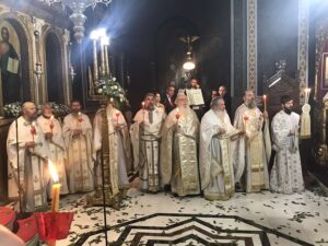 Ο Πανοσιολογιώτατος Αρχιμανδρίτης π. Αμφιλόχιος Παπανδρέου, Πρωτοσύγκελλος της Ιεράς μας Μητροπόλεως ανέγνωσε το Πασχαλινό Μήνυμα του Σεβασμιωτάτου Μητροπολίτου μας κ. Τιμοθέου μετά την ανάγνωση του ευαγγελικού αναγνώσματος.