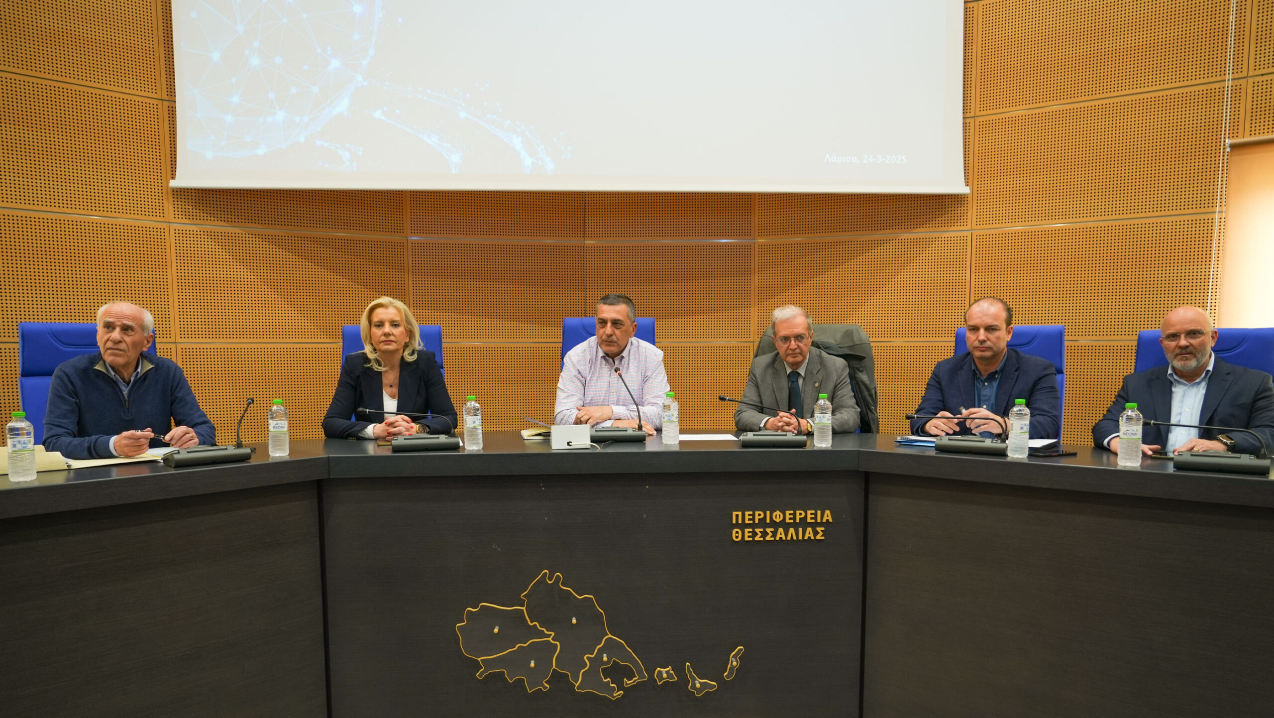 Στην εισήγηση του ο Περιφερειάρχης Θεσσαλίας Δημήτρης Κουρέτας σημείωσε ότι για τα διαχρονικά προβλήματα λειψυδρίας και τις έντονες διαμάχες ανάμεσα σε διάφορες περιοχές του κάμπου της Θεσσαλίας, η  γενεσιουργός αιτία ήταν και παραμένει η επί πολλές δεκαετίες ακραία αναντιστοιχία ανάμεσα στην τεράστια «ζήτηση» νερού (κυρίως για τις αρδεύσεις) και στην περιορισμένη «προσφορά» από τους λίγους ταμιευτήρες, από ποτάμια και από υπόγειους υδροφορείς. Χωρίς νερό δεν μπορεί να υπάρξει αγροτική παραγωγή και χωρίς αγροτική παραγωγή δεν μπορεί να υπάρξει μέλλον για τη Θεσσαλία, αλλά και για ολόκληρη τη χώρα. Σε λίγο θα ξεκινήσει η αρδευτική περίοδος του 2025, δεύτερη χρονιά από τις πλημμύρες του 2023, με τους αγρότες μας να μην έχουν συνέλθει ακόμη από τις καταστροφικές συνέπειες τους, παρότι ως Περιφέρεια κάναμε ότι είναι ανθρωπίνως δυνατό για έργα αποκατάστασης σχεδόν σε όλες τις περιοχές που επλήγησαν. Όλες οι ενδείξεις και τα υδρολογικά στοιχεία που διαθέτουμε, μας οδηγούν στο συμπέρασμα ότι η φετινή αρδευτική χρονιά θα είναι δύσκολη. Πρέπει να υπάρχει σοβαρός προγραμματισμός, συνεργασία και τήρηση των αποφάσεων που έχουν ληφθεί, από όλους τους εμπλεκόμενους στην διαχείριση του νερού και από όλους τους αρδευτές, κατά μήκος του Πηνειού. Το επόμενο διάστημα όλοι μας, υπηρεσίες, φορείς, διαχειριστές και χρήστες νερού θα πρέπει να πάρουμε όλα τα αναγκαία μέτρα και να είμαστε σε ετοιμότητα  για τα πιθανά προβλήματα που θα αντιμετωπίσουμε, ιδιαίτερα μάλιστα αν συνεχιστεί η ανομβρία και δεν μεσολαβήσουν διαστήματα με βροχοπτώσεις που θα αμβλύνουν τις ανάγκες για αρδευτικό νερό.