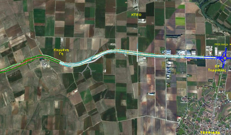 -Την κατασκευή τεχνικού Κάτω Διάβασης που συνδέει και τις εκατέρωθεν παράπλευρες οδούς, στη Χ.Θ. 8+391 της αρτηρίας, στη διασταύρωση με την οδό προς Κ.Τ.Ε.Ο. Λάρισας.