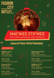 Μια ατελείωτη γιορτή! Αυτή θα είναι η καθημερινότητα από το Σάββατο 14 Δεκεμβρίου 2024 και για όλη την περίοδο των Χριστουγέννων στο Fashion City Outlet. Οι παιδικές δραστηριότητες ξεκινούν και περιλαμβάνουν μια μεγάλη ποικιλία εκδηλώσεων που θα ξετρελάνει τα παιδιά: παραμύθια, ζαχαροπλαστική, face painting, παραστάσεις, κατασκευές, LEGO Graffiti Cube, κεράσματα και πολλά άλλα. Και όλα αυτά συντροφιά με τον Άγιο Βασίλη, που θα δέχεται τα γράμματα των παιδιών στο σπιτάκι του, τον Ρούντολφ και τον Χιονάνθρωπο!