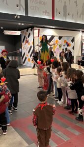 Οι μικροί επισκέπτες ταξίδεψαν στον κόσμο του «Βασιλιά της Αποκριάς», γνώρισαν το «Καρναβάλι των Ζώων» και χόρεψαν με τον «Χαρταετό Αρλεκίνο» σε διαδραστικές παραστάσεις γεμάτες χρώμα, μουσική και συμμετοχή. Το ανοιχτό Carnival Party ξεσήκωσε μικρούς και μεγάλους με γαϊτανάκι, clown, ξυλοπόδαρη και μασκότ, δημιουργώντας μια αυθεντική αποκριάτικη εμπειρία που γέμισε τον χώρο ρυθμό και χαμόγελα.