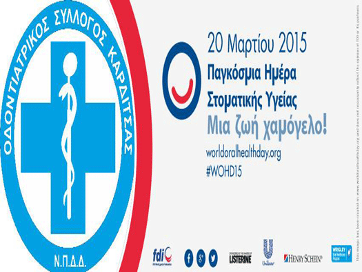 Η 20η Μαρτίου έχει οριστεί, από την Παγκόσμια Οδοντιατρική Ομοσπονδία, ως ημέρα εορτασμού της παγκόσμιας ημέρας στοματικής υγείας. Το φετινό παγκόσμιο σύνθημα του εορτασμού είναι «μια ζωή χαμόγελο». Εμείς, ως μέλη του Οδοντιατρικού Συλλόγου Καρδίτσας, ευχόμαστε να φωτίζει τα πρόσωπα των ανθρώπων κάθε ηλικίας ένα υγιές χαμόγελο. Αλλά, αν φύγουμε από τον χώρο των ευχών …