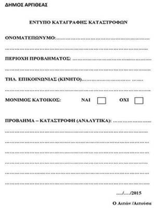 Έντυπο καταγραφής καταστροφών από το Δήμο Αργιθέας