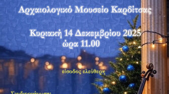 Η Εφορεία Αρχαιοτήτων Καρδίτσας και ο Σύλλογος Φίλων Αρχαιολογικού Μουσείου Καρδίτσας διοργανώνουν Χριστουγεννιάτικη εκδήλωση/συναυλία του Δημοτικού Ωδείου Καρδίτσας, την Κυριακή 14 Δεκεμβρίου στις 11:00 το πρωί, στον χώρο εκδηλώσεων του Αρχαιολογικού Μουσείου Καρδίτσας. Μετά το πέρας της συναυλίας ο Άγιος Βασίλης θα μοιράσει δώρα στους μικρούς μας φίλους που θα παρευρεθούν στην εκδήλωση. Η είσοδος …