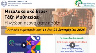 Έναρξη Εγγραφών – Μεταλυκειακό Έτος «Τάξη Μαθητείας» ΕΠΑ.Λ. (Ι΄ Φάση) 2025-2026