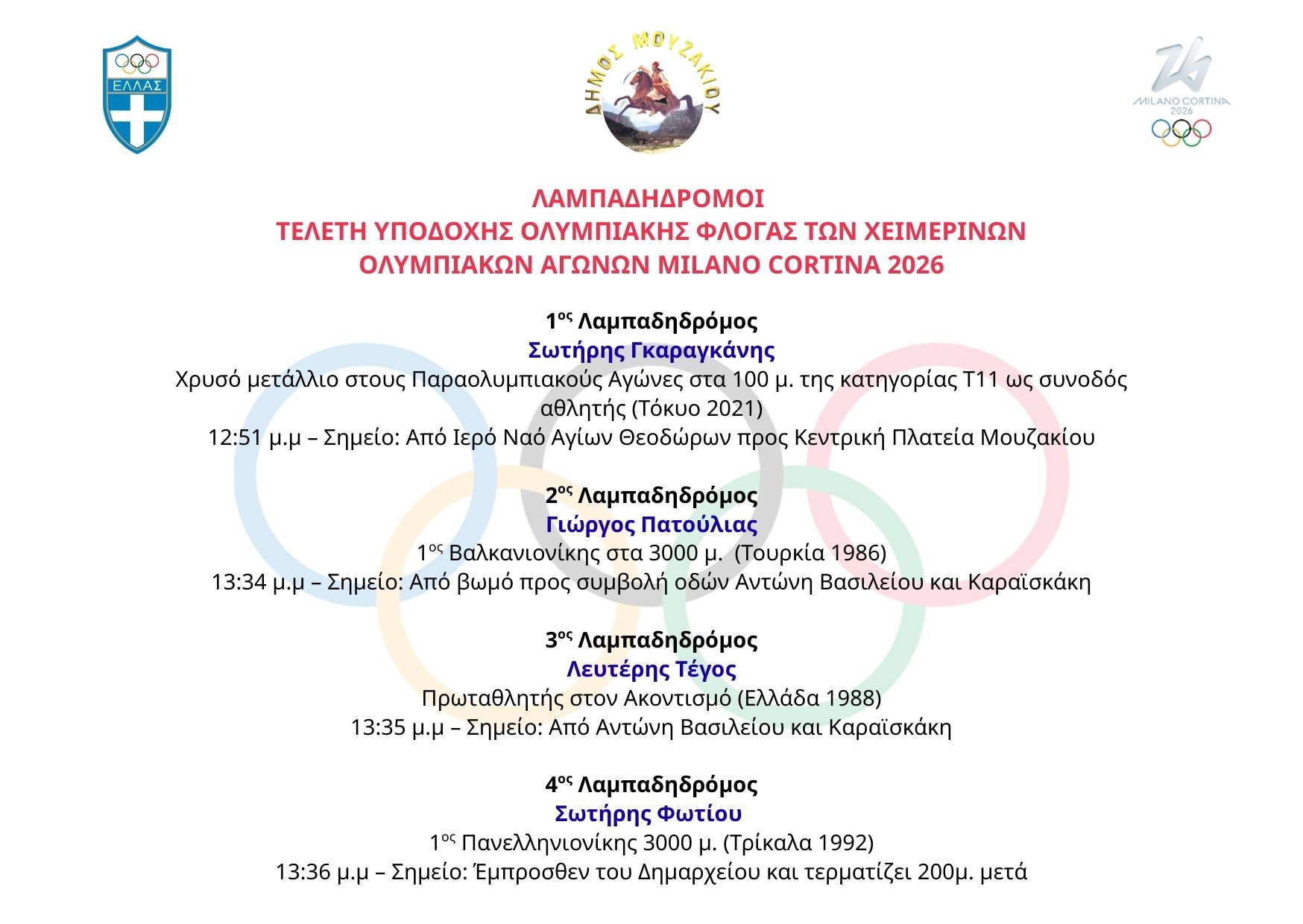 Ο Δήμαρχος Μουζακίου σας προσκαλεί στην Τελετή Υποδοχής της Ολυμπιακής Φλόγας των Χειμερινών Ολυμπιακών Αγώνων Milano Cortina 2026, που θα πραγματοποιηθεί την Παρασκευή 28 Νοεμβρίου 2025 στο Μουζάκι. Πρόγραμμα 12:51 μ.μ Άφιξη Ολυμπιακής Φλόγας στον Ιερό Ναό Αγίων Θεοδώρων 12:54 μ.μ. Έναρξη Τελετής Υποδοχής Ολυμπιακής Φλόγας στην Κεντρική Πλατεία Μουζακίου – Άφιξη αντιπροσωπείας επισήμων …